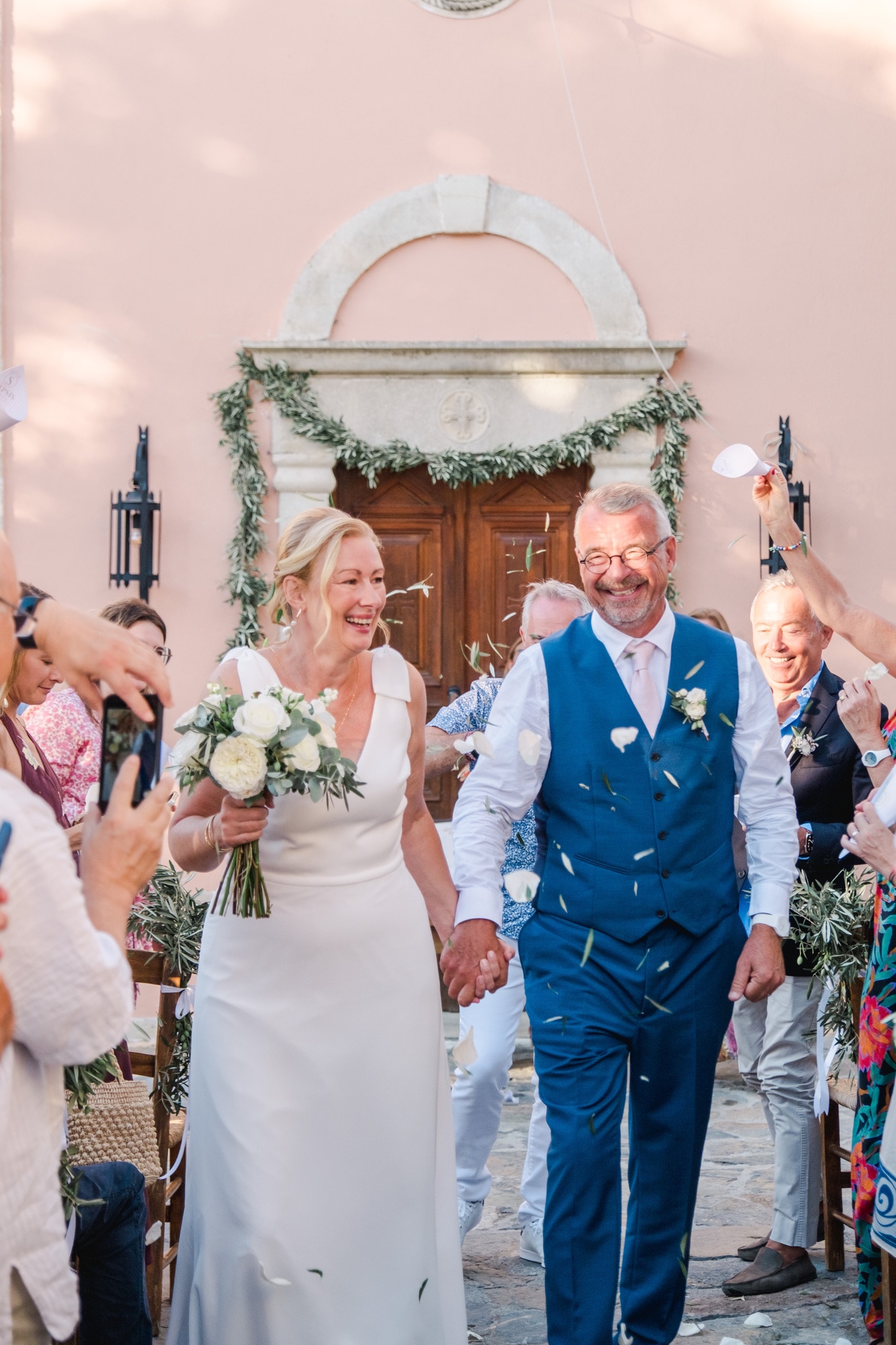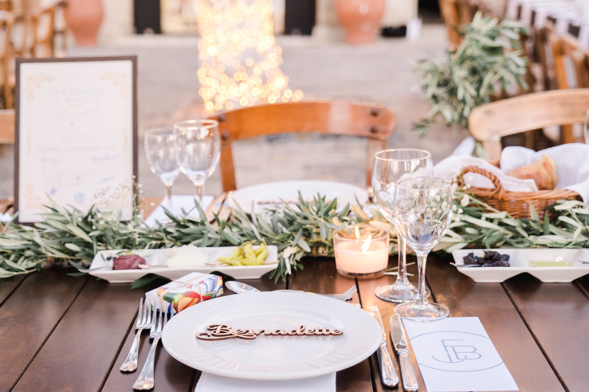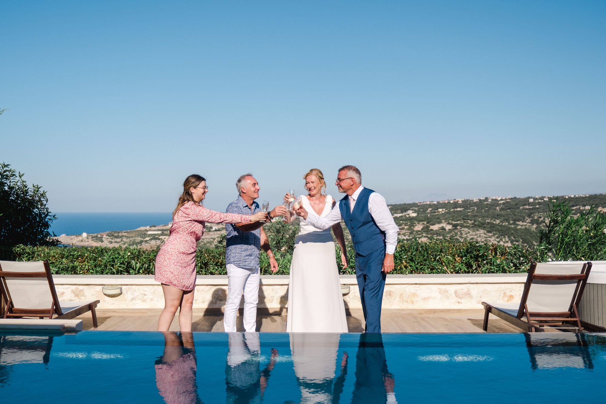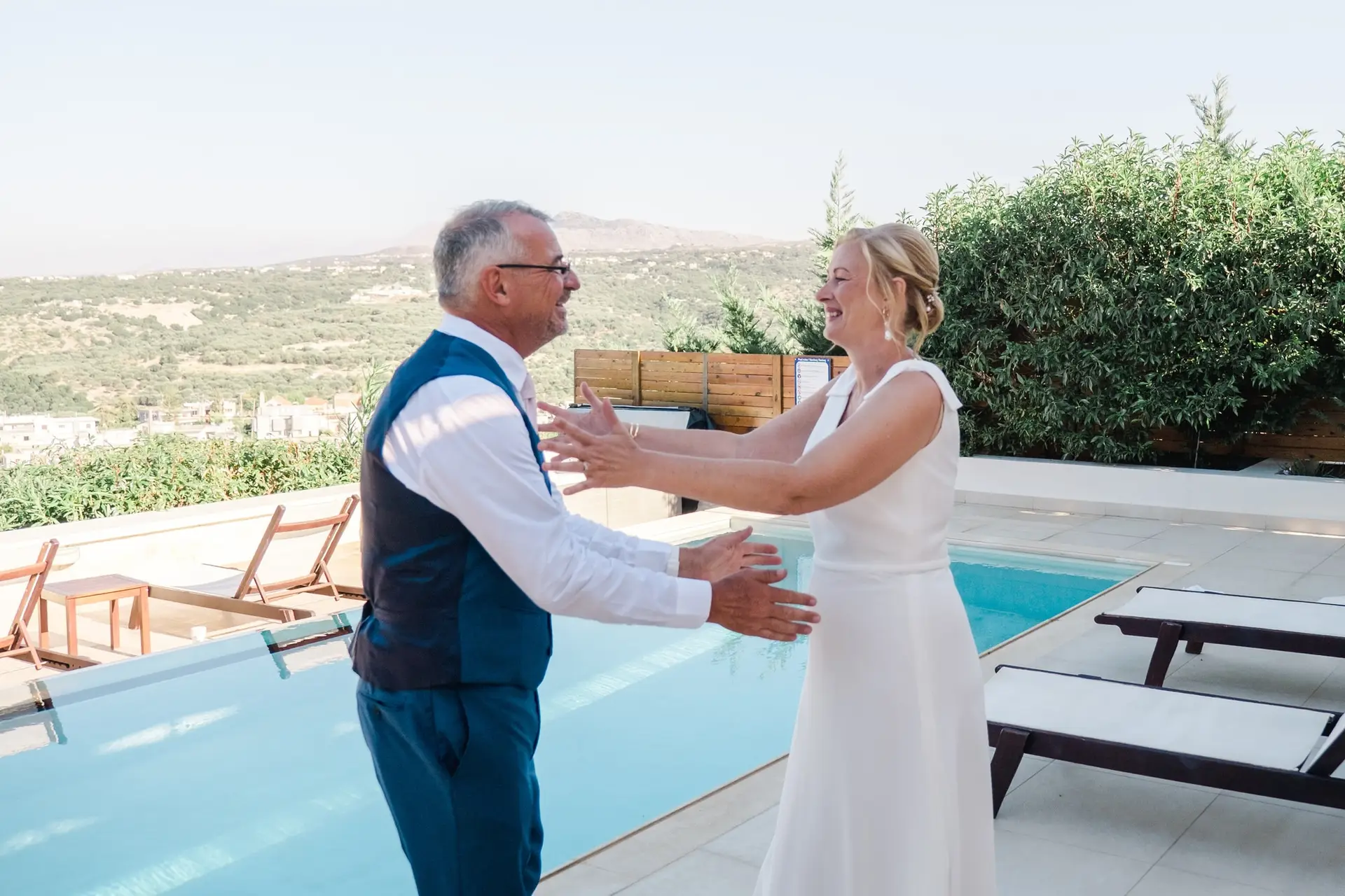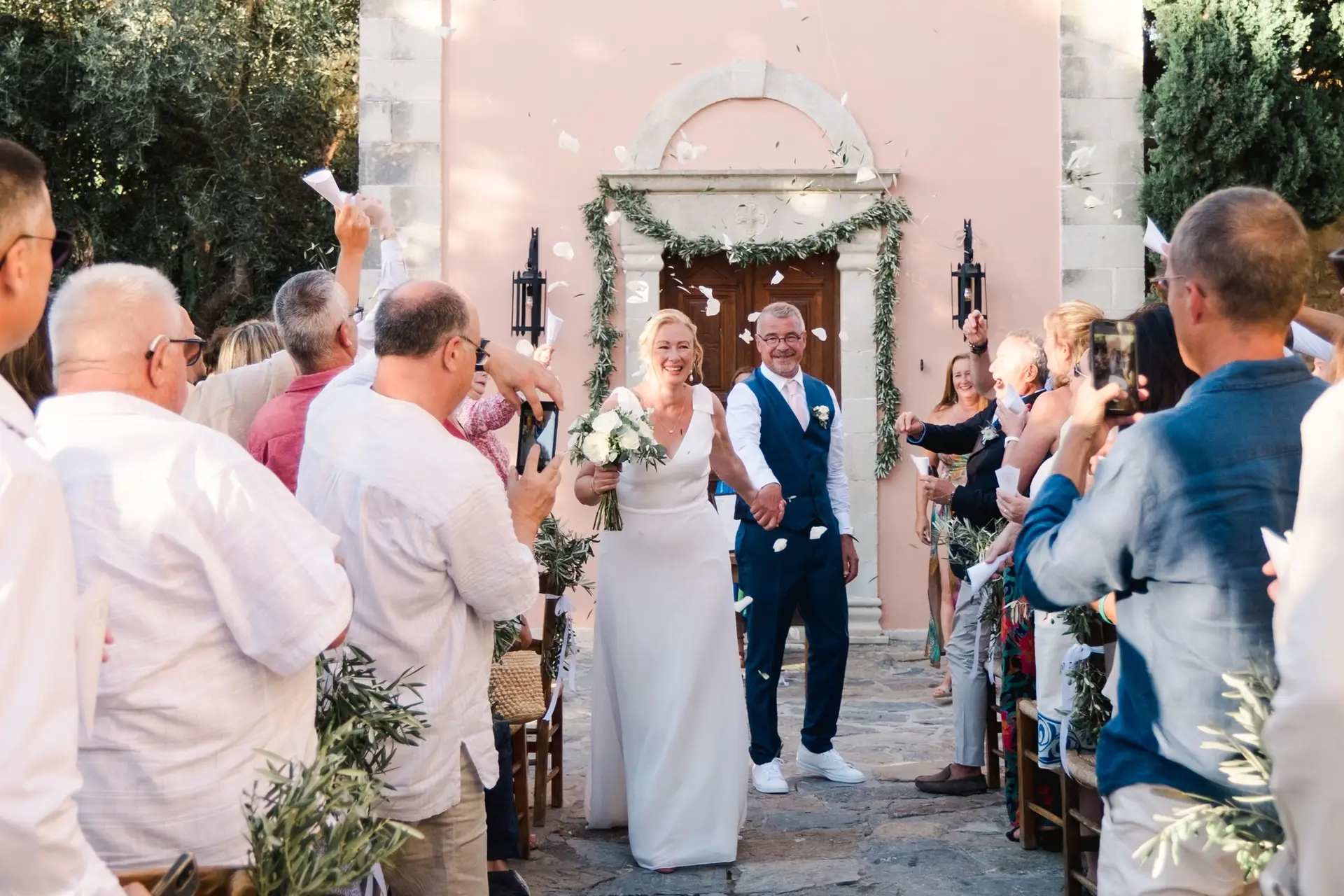 Ce mariage en Crète s’est déroulé à Agreco Farm, près de Rethymnon, dans un cadre authentique mêlant nature, pierre et traditions locales. Entourés d’oliviers et de bâtiments en pierre typiquement crétois, les mariés ont célébré leur union dans une ambiance chaleureuse et conviviale. Après la cérémonie, les invités ont partagé un cocktail puis un dîner en plein air autour de longues tables élégamment décorées de fleurs et de feuillage méditerranéen. À la nuit tombée, les guirlandes lumineuses ont illuminé la réception, laissant place à une soirée festive rythmée par des danses traditionnelles crétoises et des moments de joie spontanés, reflétant l’âme d’un véritable mariage destination en Crète.