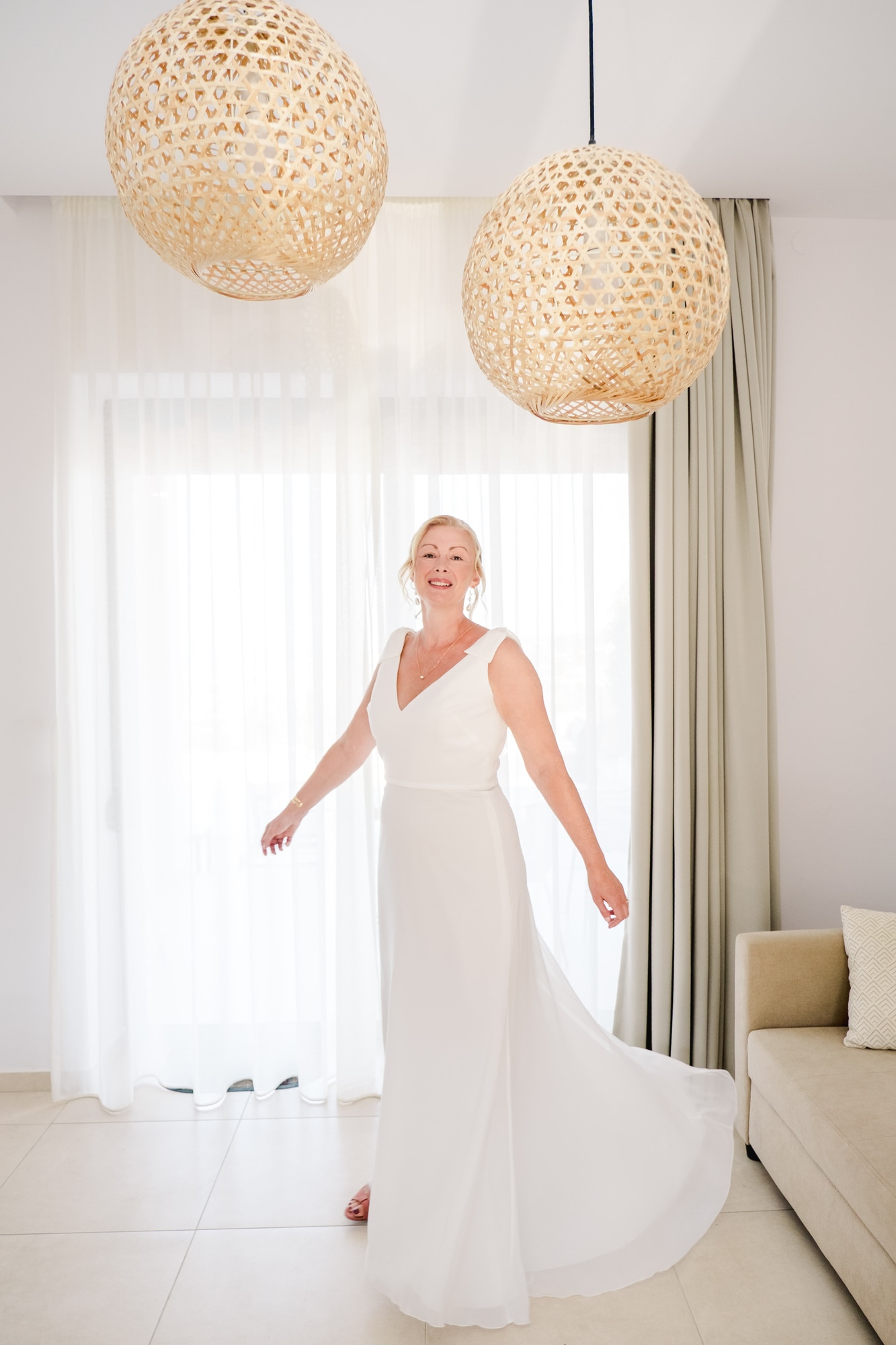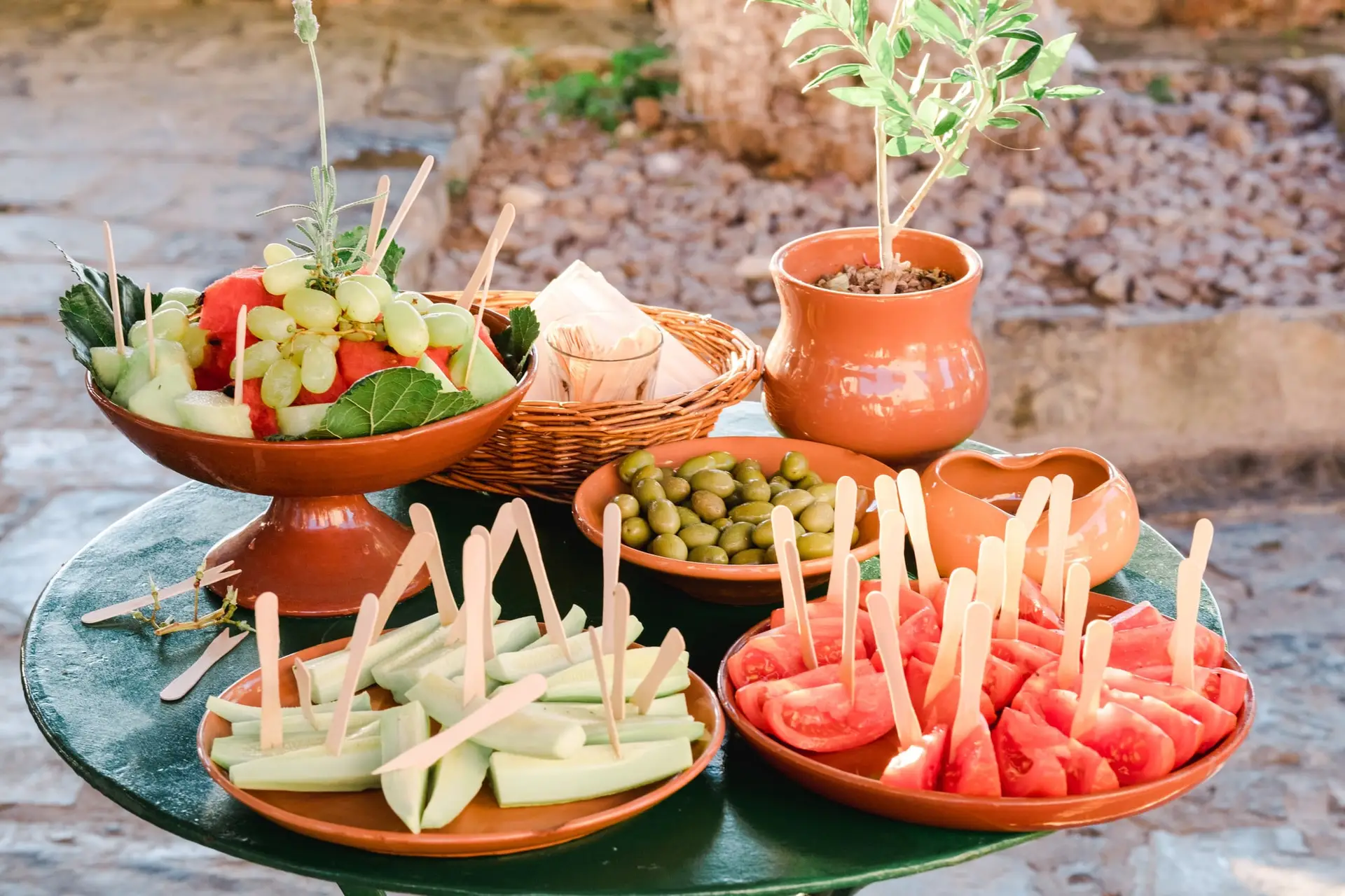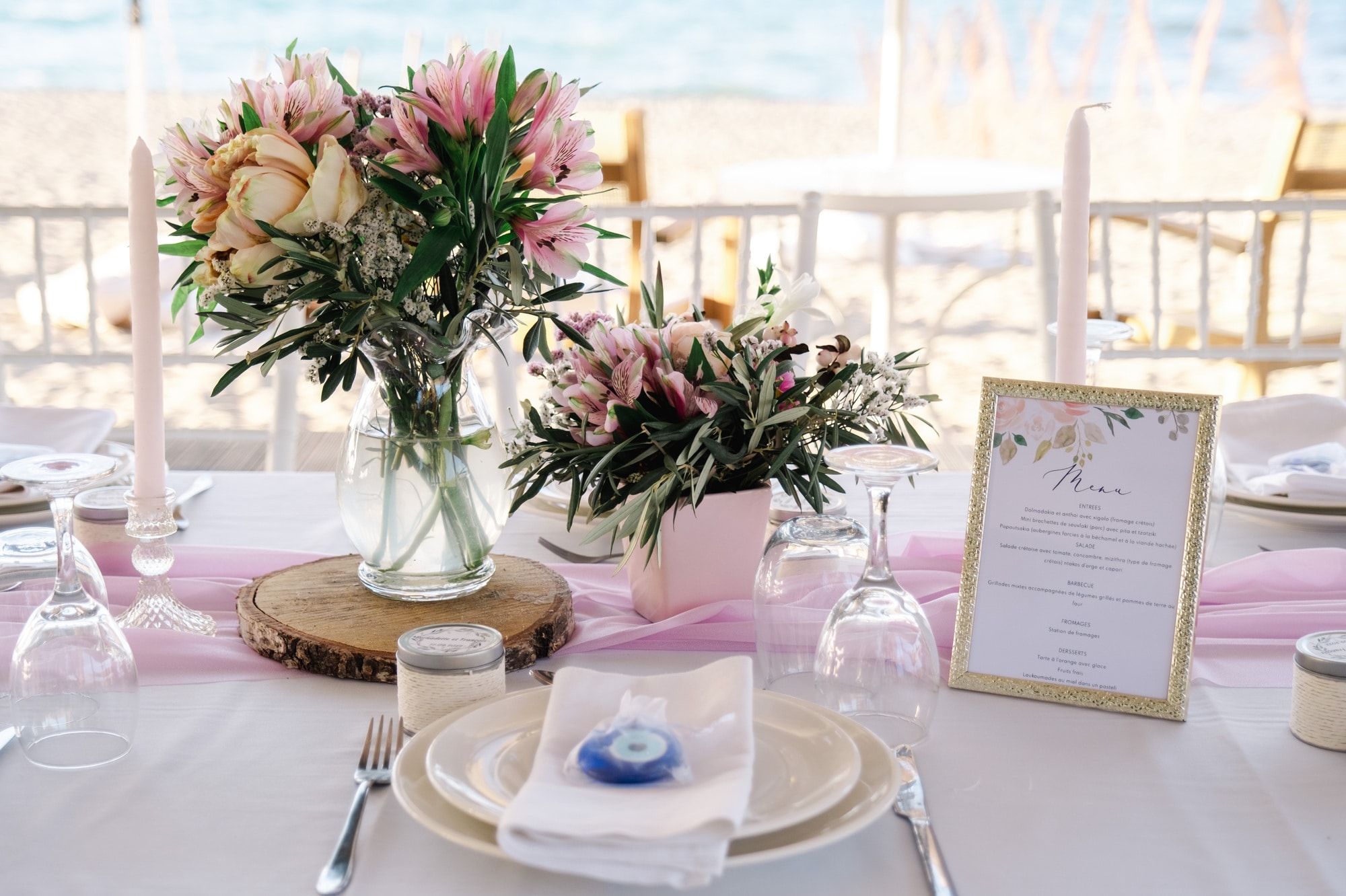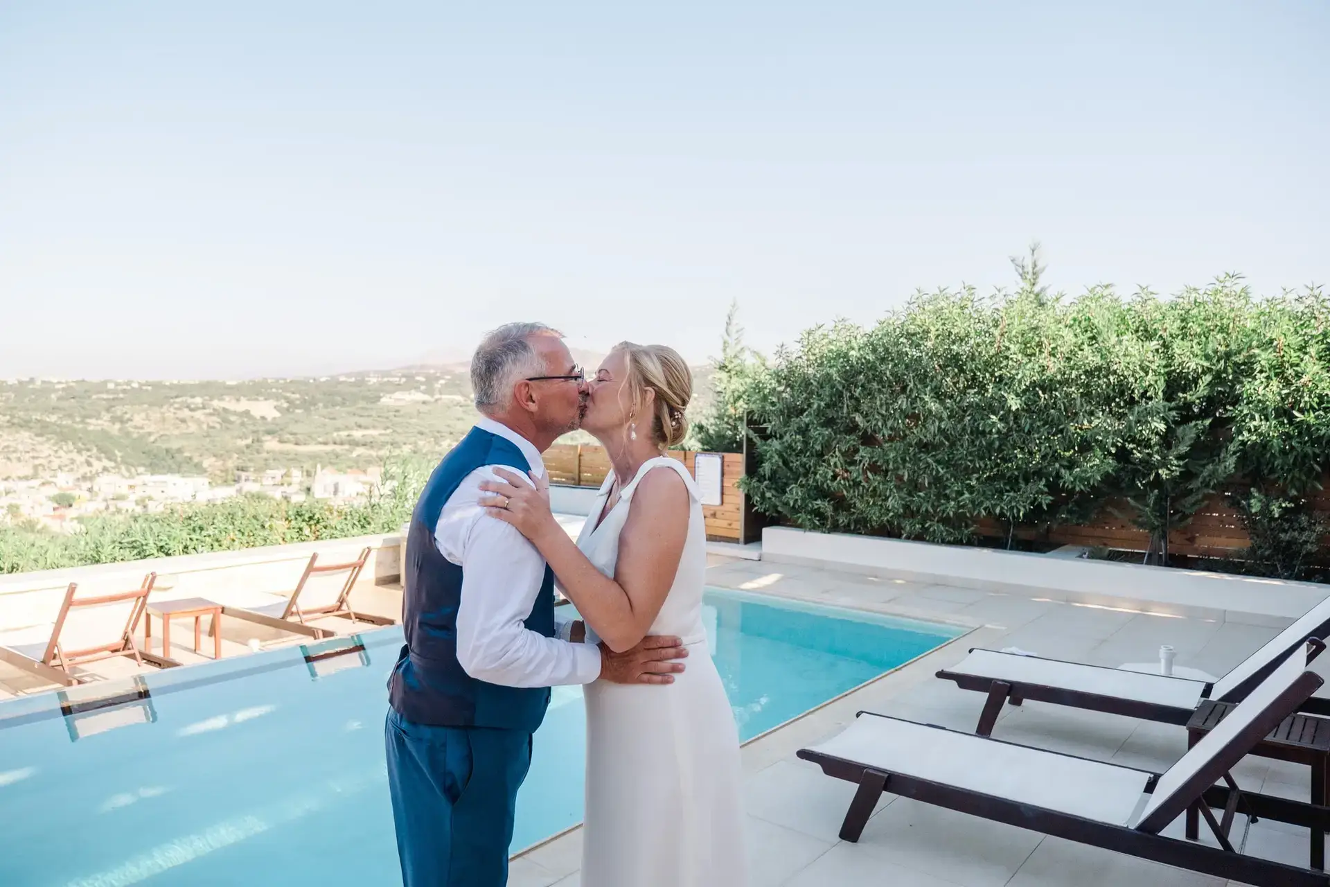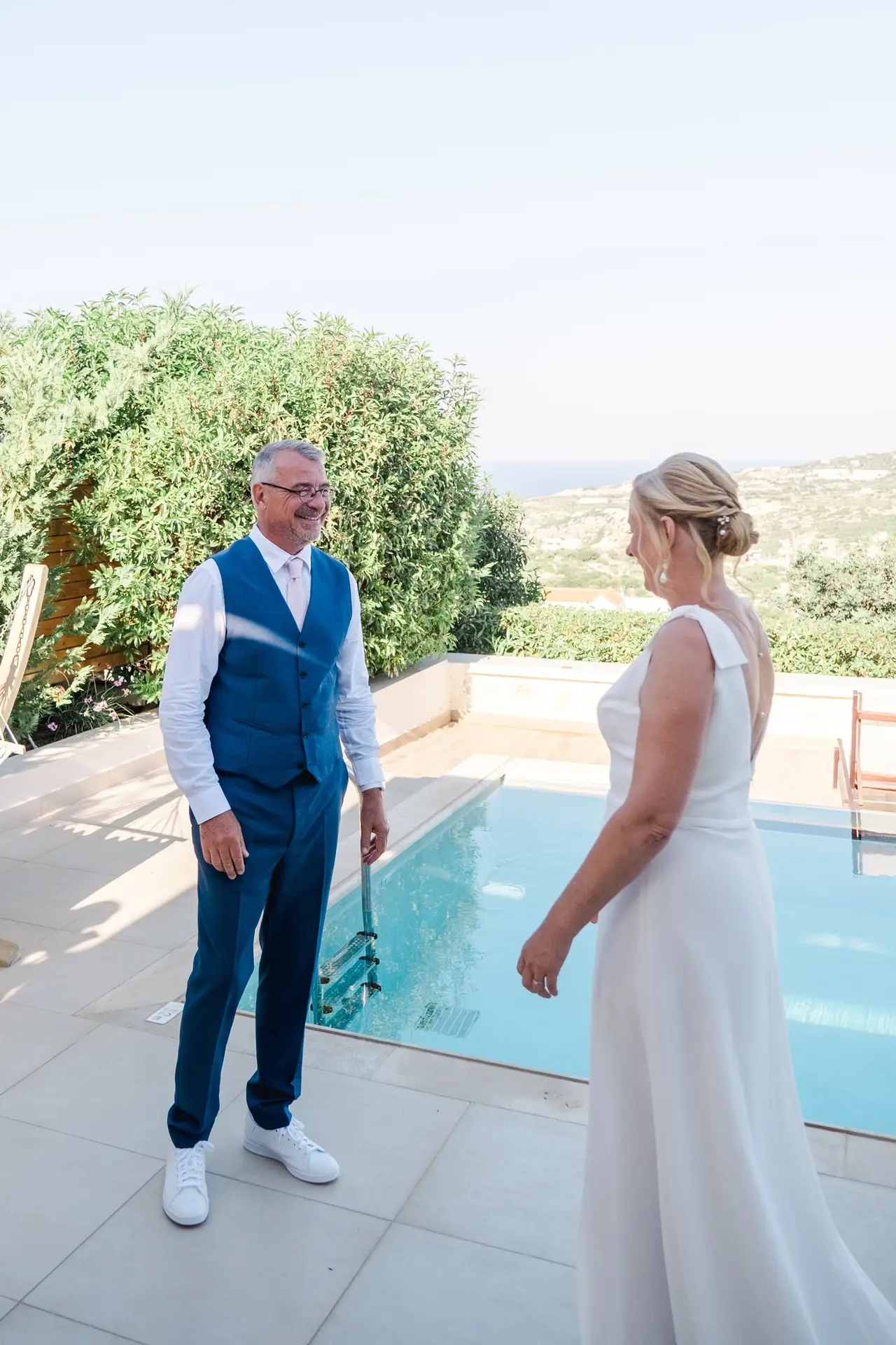 Ce mariage en Crète s’est déroulé à Agreco Farm, près de Rethymnon, dans un cadre authentique mêlant nature, pierre et traditions locales. Entourés d’oliviers et de bâtiments en pierre typiquement crétois, les mariés ont célébré leur union dans une ambiance chaleureuse et conviviale. Après la cérémonie, les invités ont partagé un cocktail puis un dîner en plein air autour de longues tables élégamment décorées de fleurs et de feuillage méditerranéen. À la nuit tombée, les guirlandes lumineuses ont illuminé la réception, laissant place à une soirée festive rythmée par des danses traditionnelles crétoises et des moments de joie spontanés, reflétant l’âme d’un véritable mariage destination en Crète.