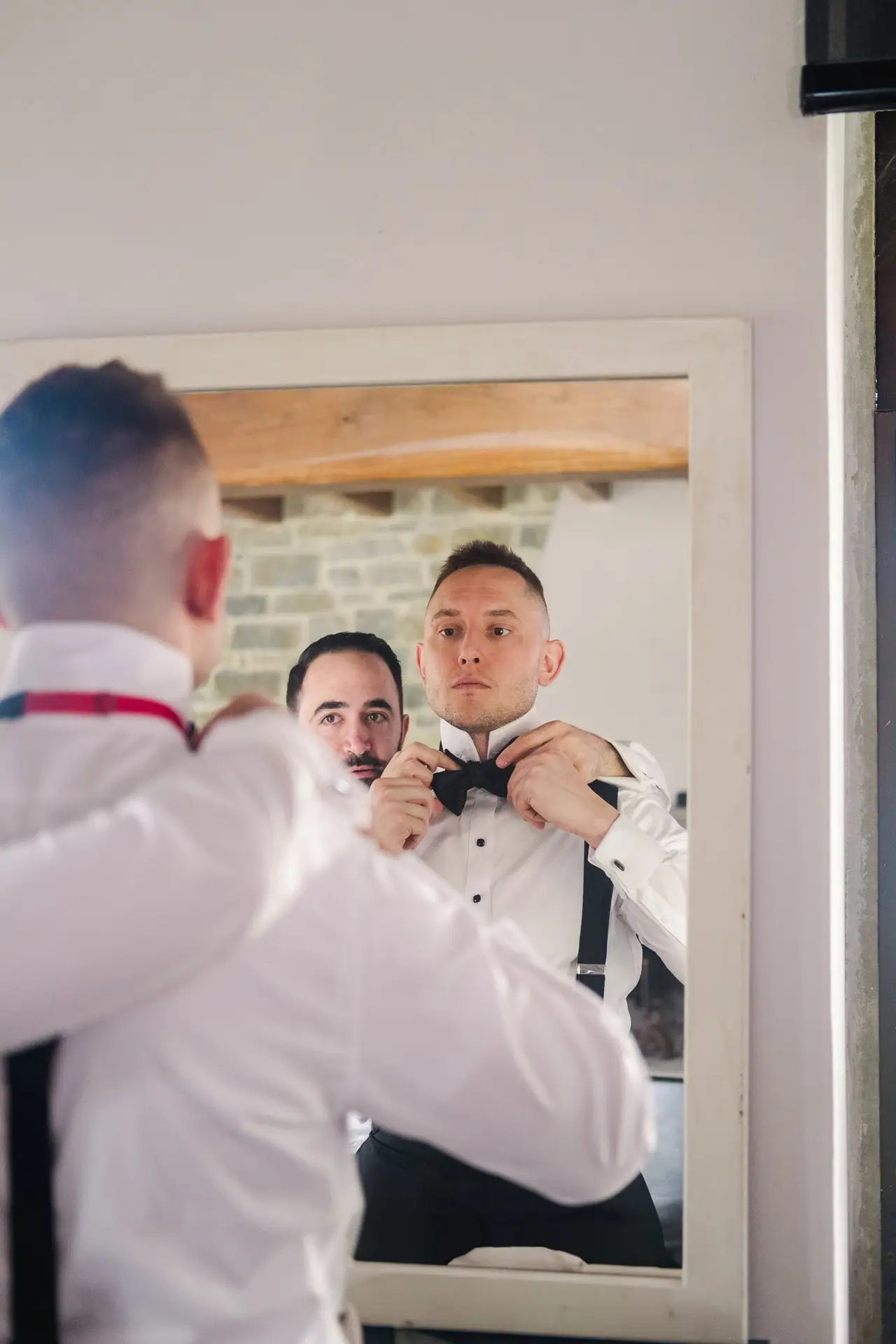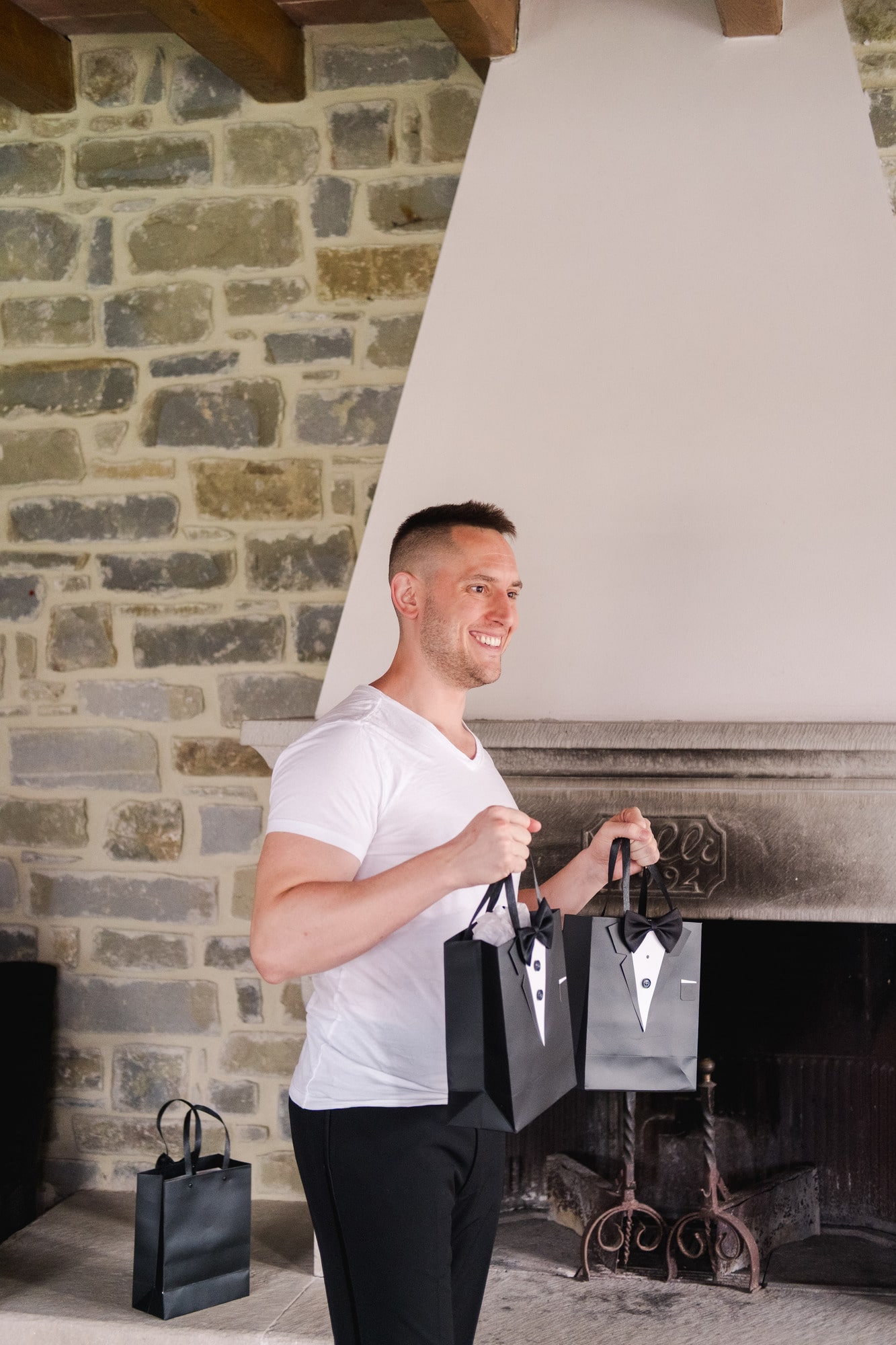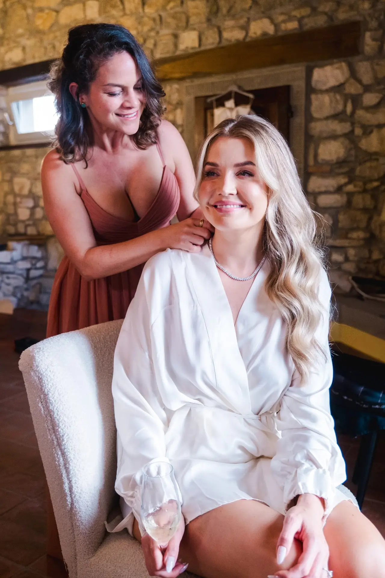 Nichée au cœur des collines toscanes, Borgo Corsignano accueille une journée hors du temps. La lumière douce du matin glisse sur les pierres anciennes tandis que les préparatifs se déroulent dans une atmosphère calme et sincère, ponctuée de gestes simples et de regards complices.
