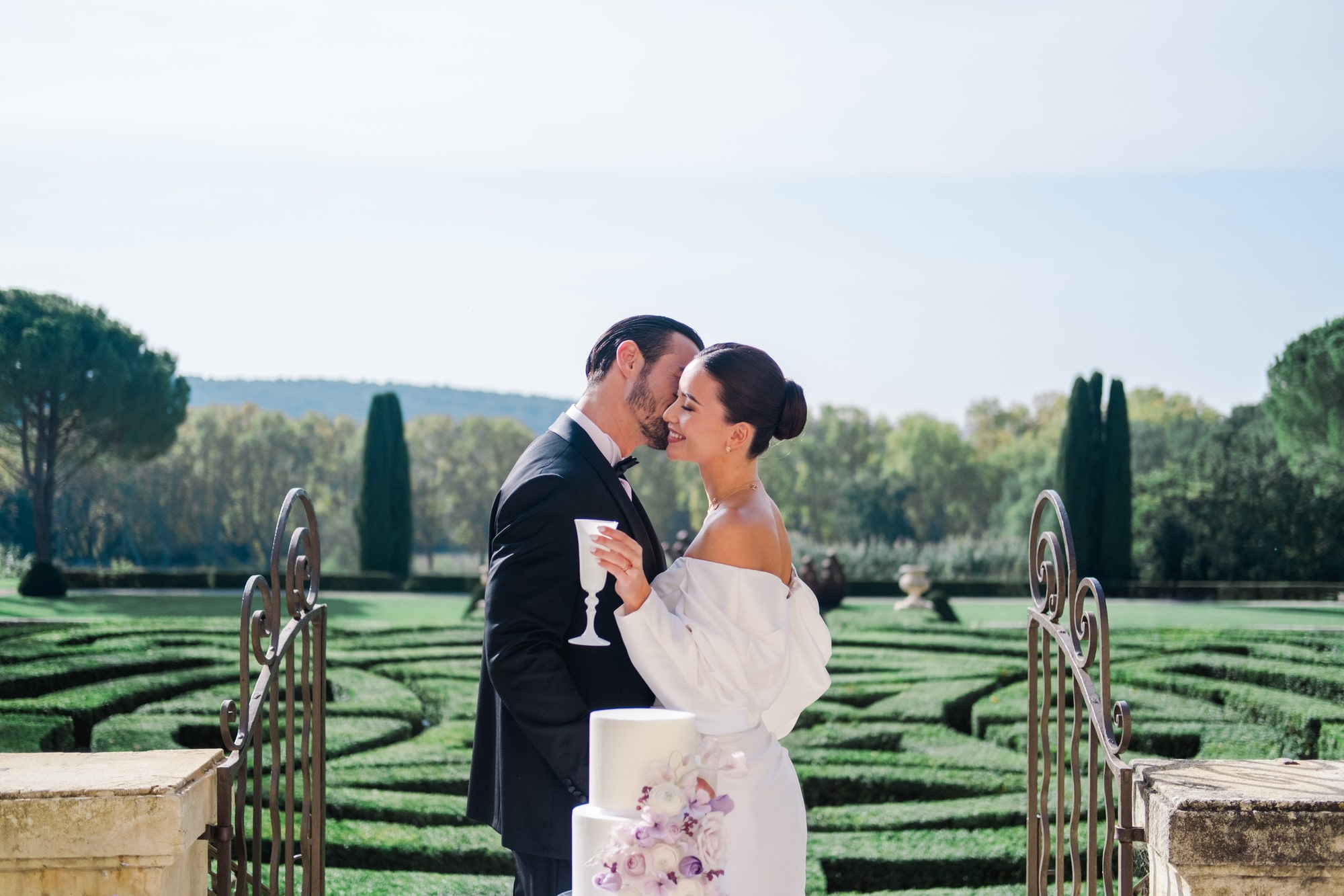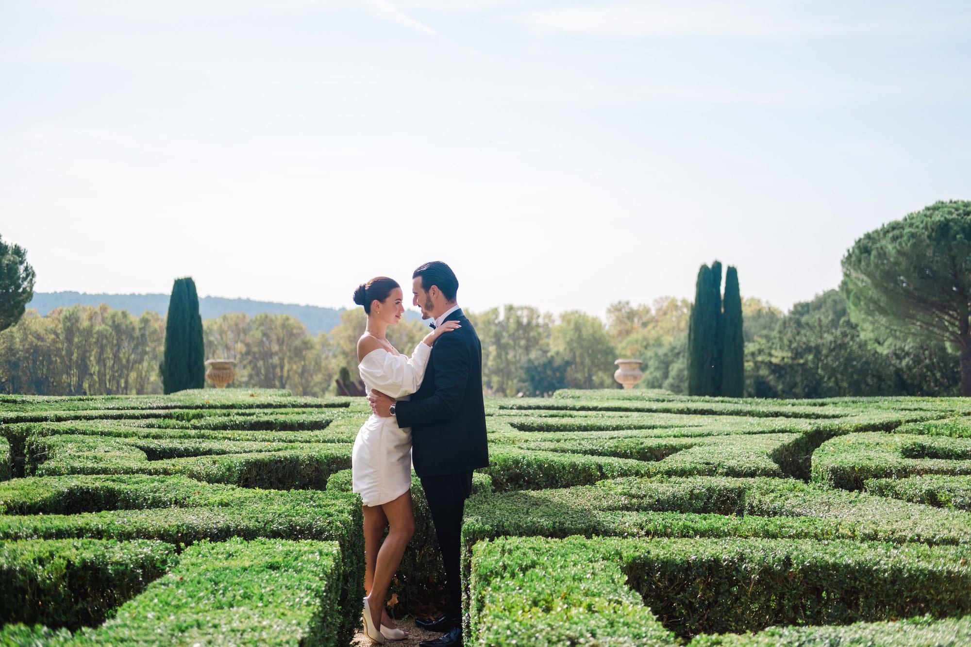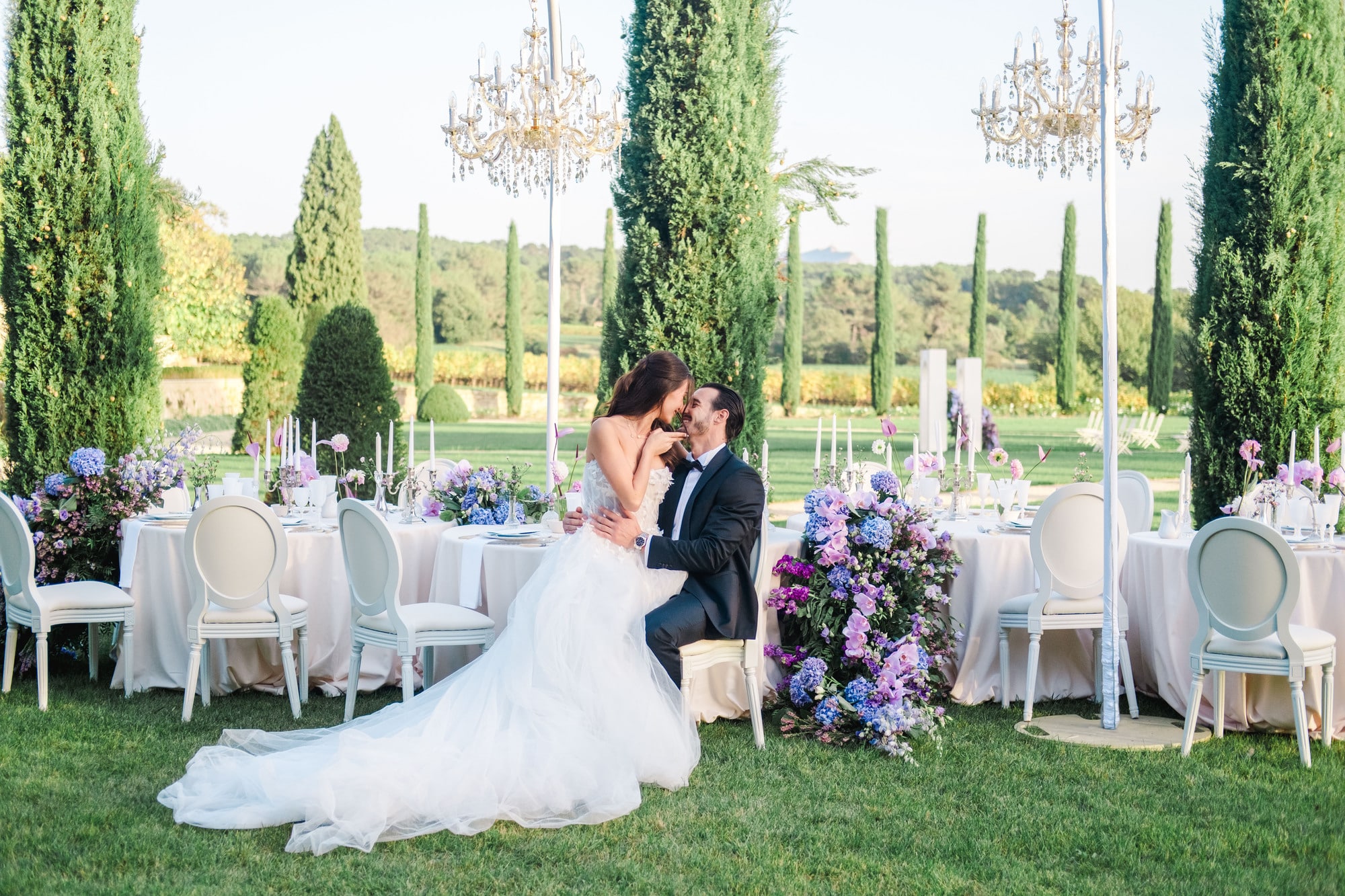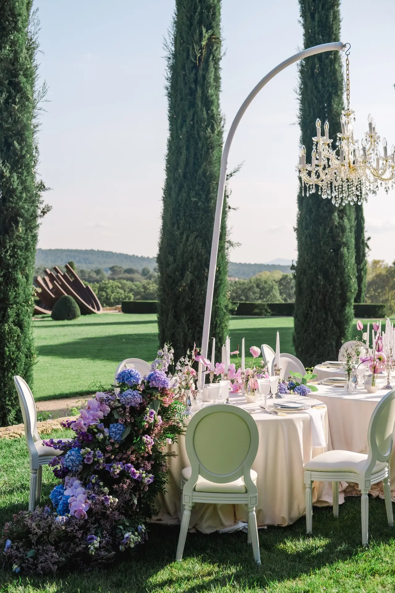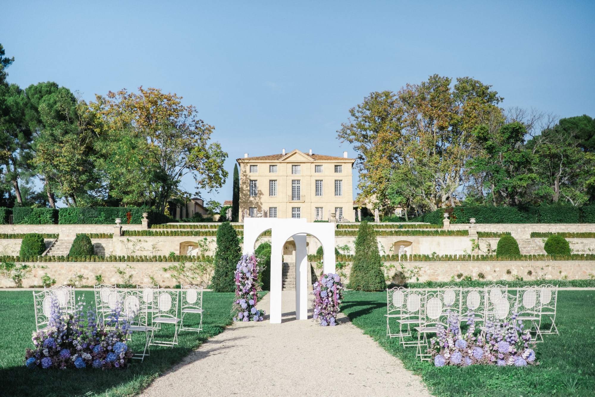 Au Château de la Gaude, chaque moment prend une dimension particulière. Une grande table dressée en extérieur, sublimée par des lustres suspendus, crée une ambiance élégante et intimiste à la nuit tombante. Le first look se déroule dans une atmosphère douce et sincère, empreinte d’émotion. La cérémonie laïque, installée dans les jardins face au château, offre un cadre naturel et apaisant, propice aux échanges authentiques. Entre lumière provençale, décors raffinés et instants partagés, ce lieu magnifie les mariages avec justesse et chaleur.
