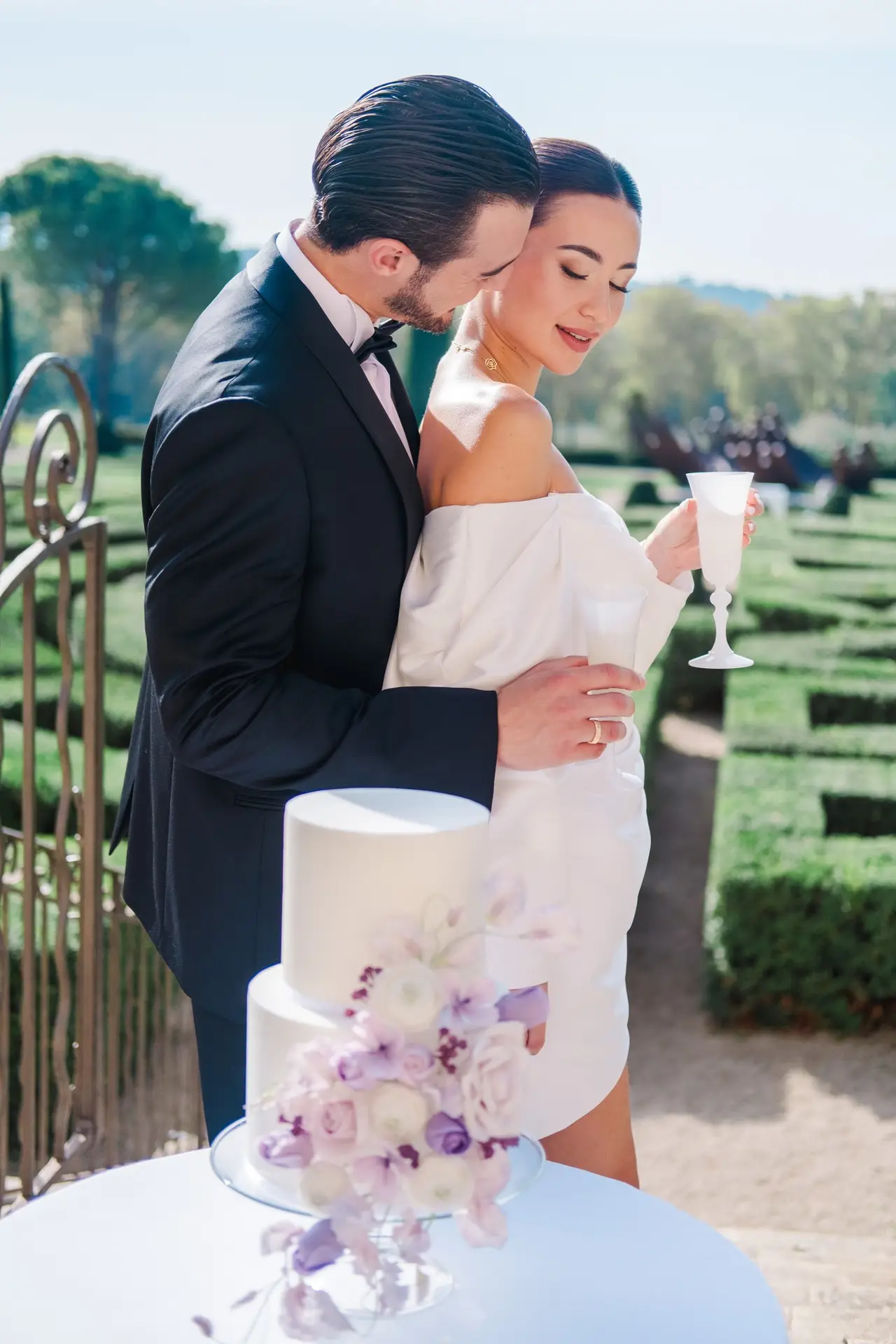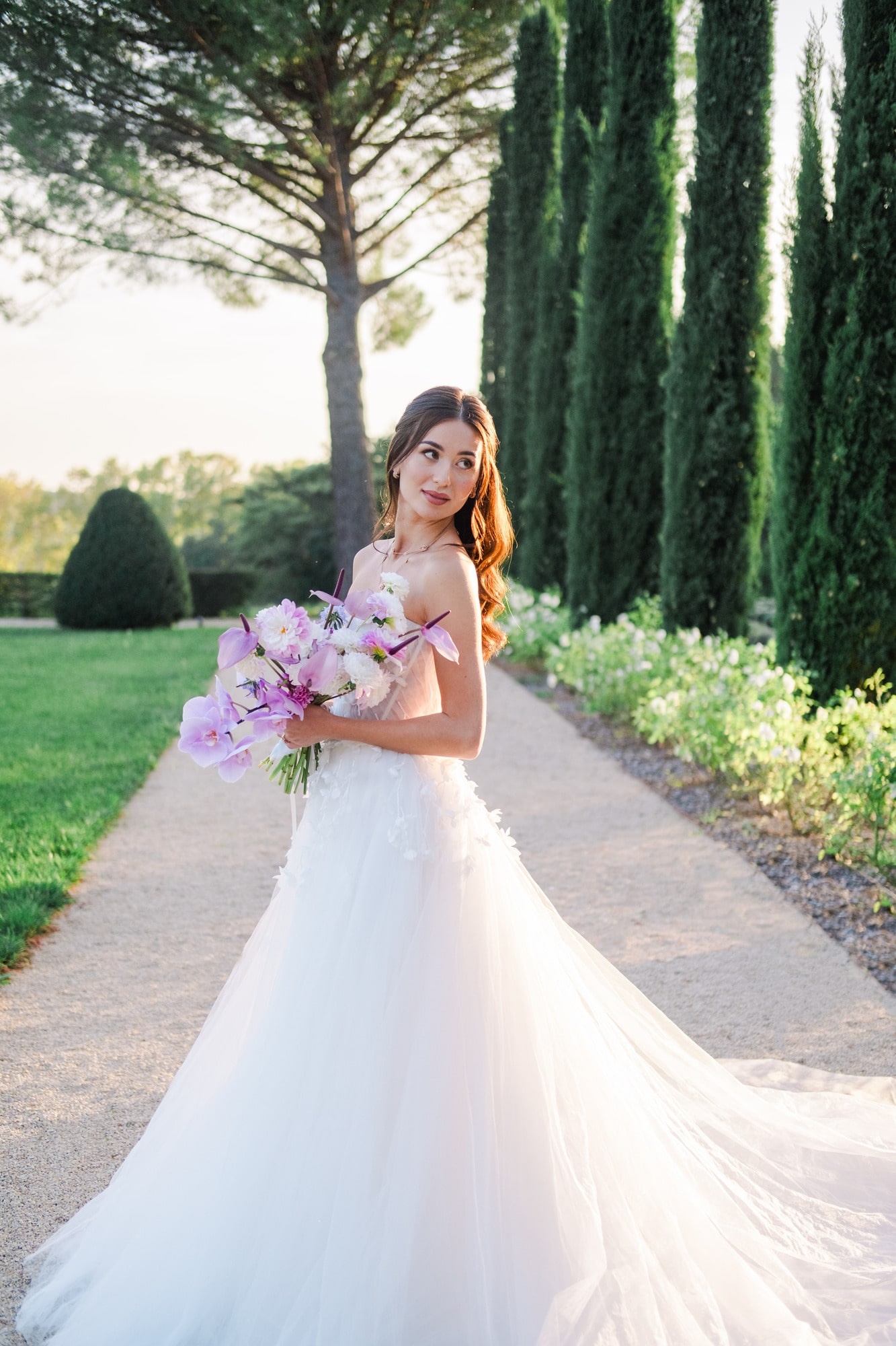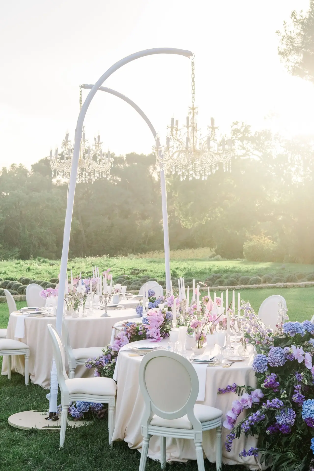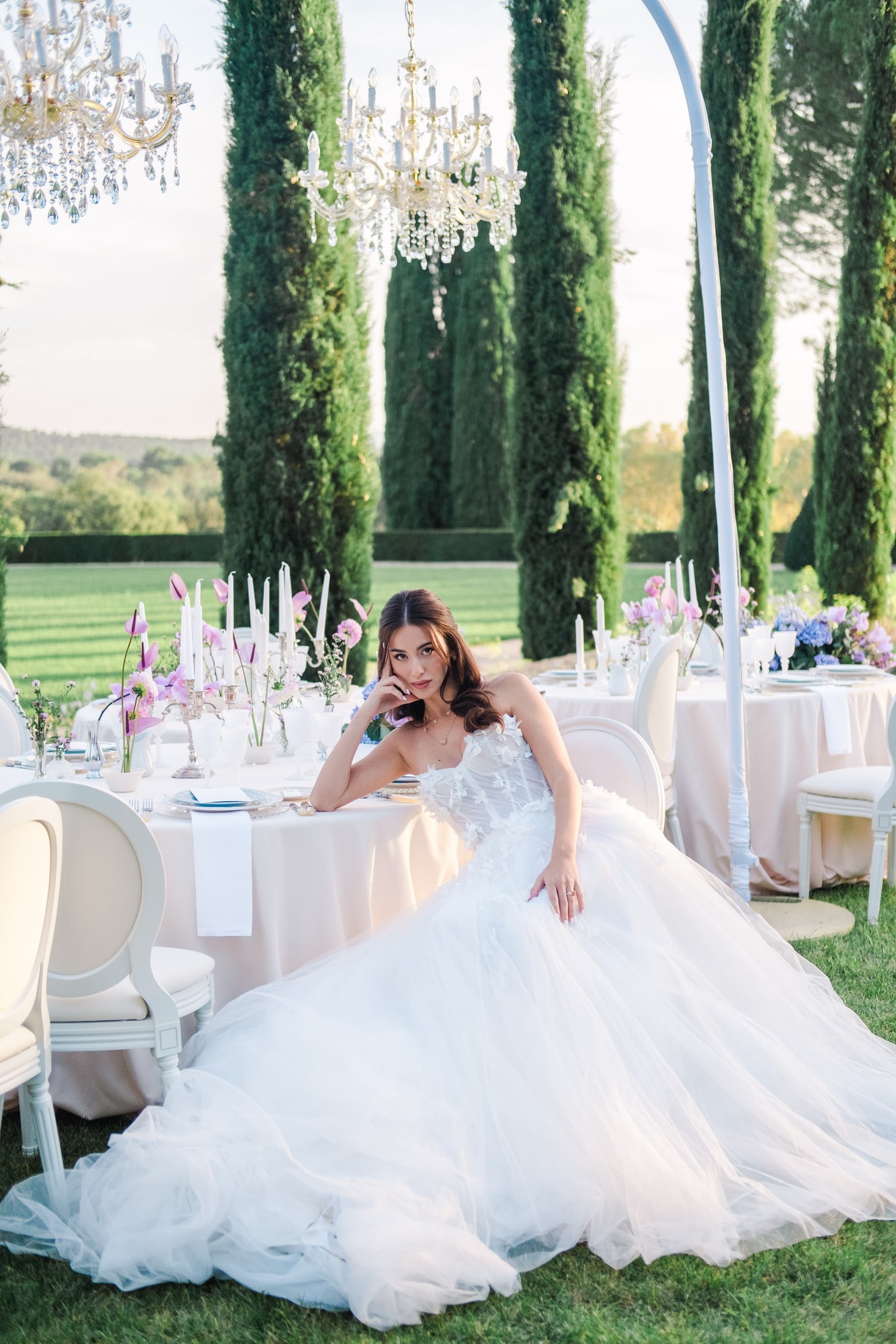 Au Château de la Gaude, chaque moment prend une dimension particulière. Une grande table dressée en extérieur, sublimée par des lustres suspendus, crée une ambiance élégante et intimiste à la nuit tombante. Le first look se déroule dans une atmosphère douce et sincère, empreinte d’émotion. La cérémonie laïque, installée dans les jardins face au château, offre un cadre naturel et apaisant, propice aux échanges authentiques. Entre lumière provençale, décors raffinés et instants partagés, ce lieu magnifie les mariages avec justesse et chaleur.