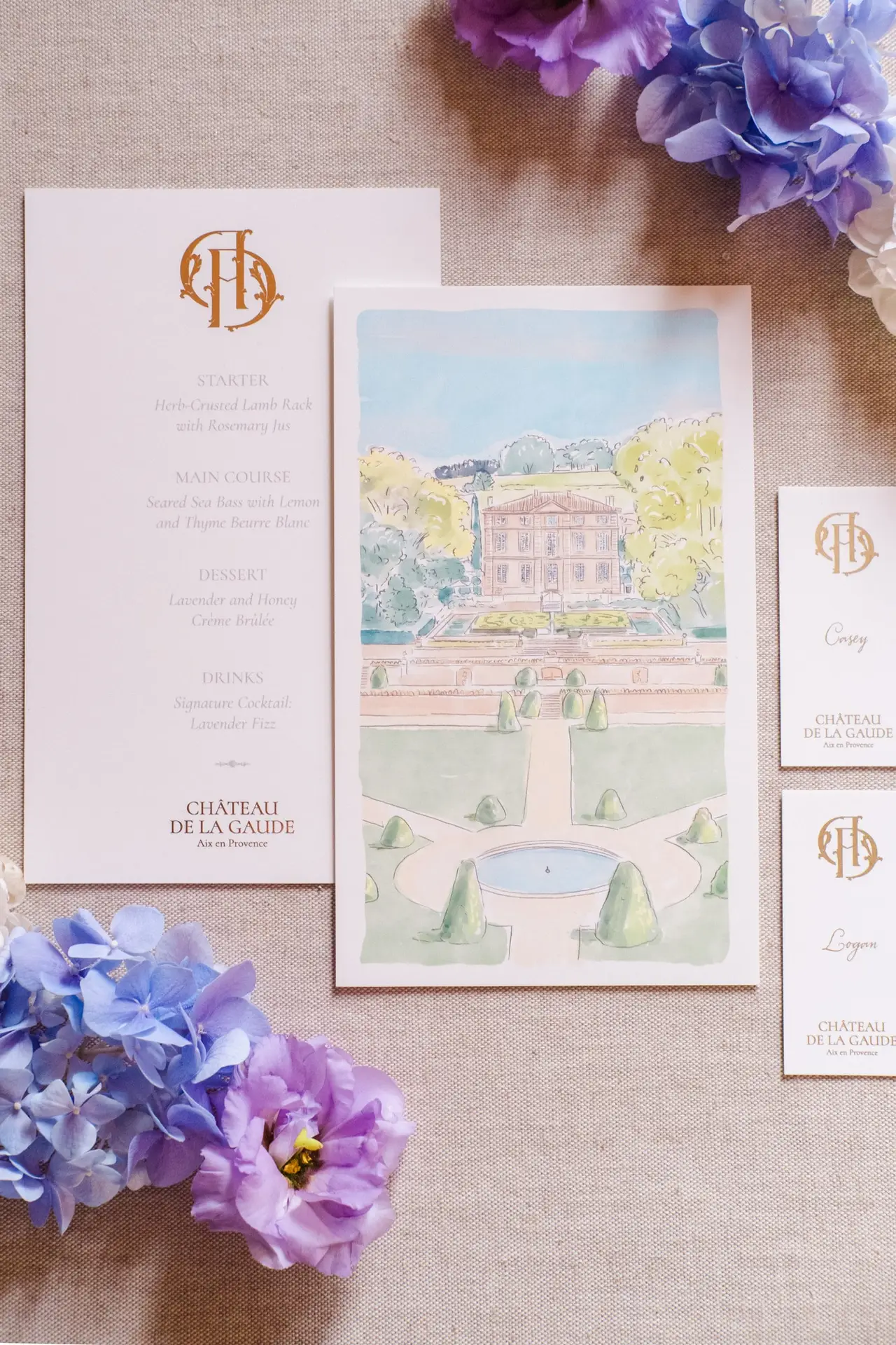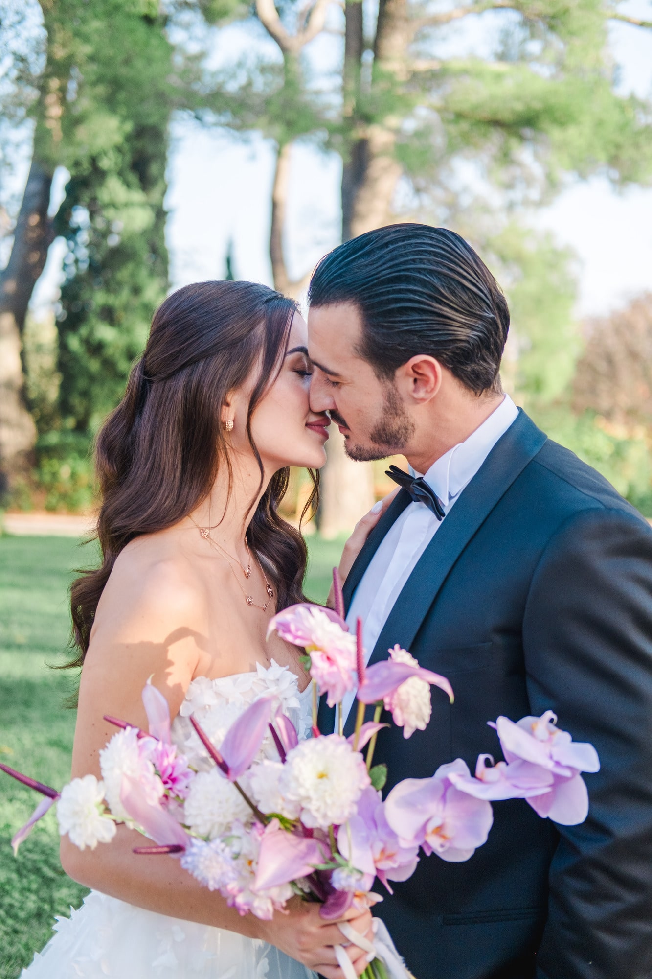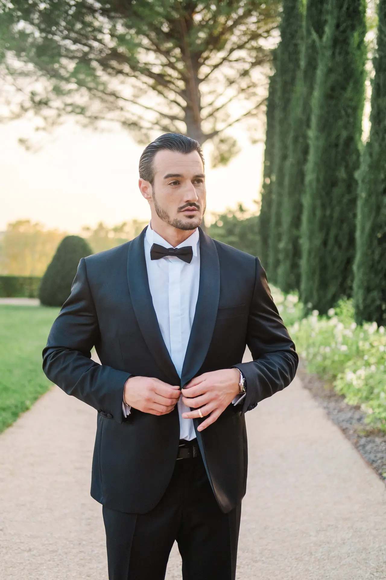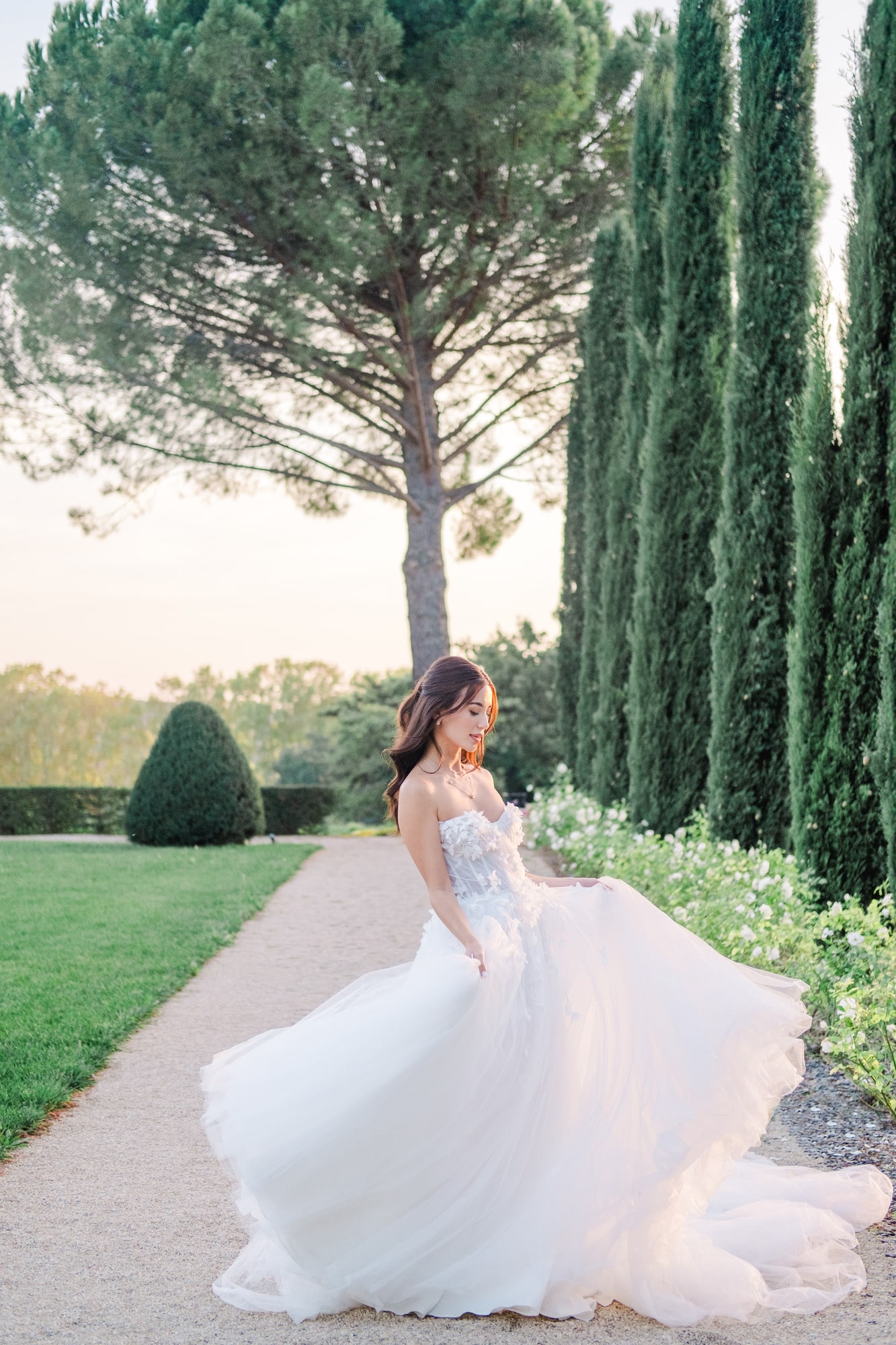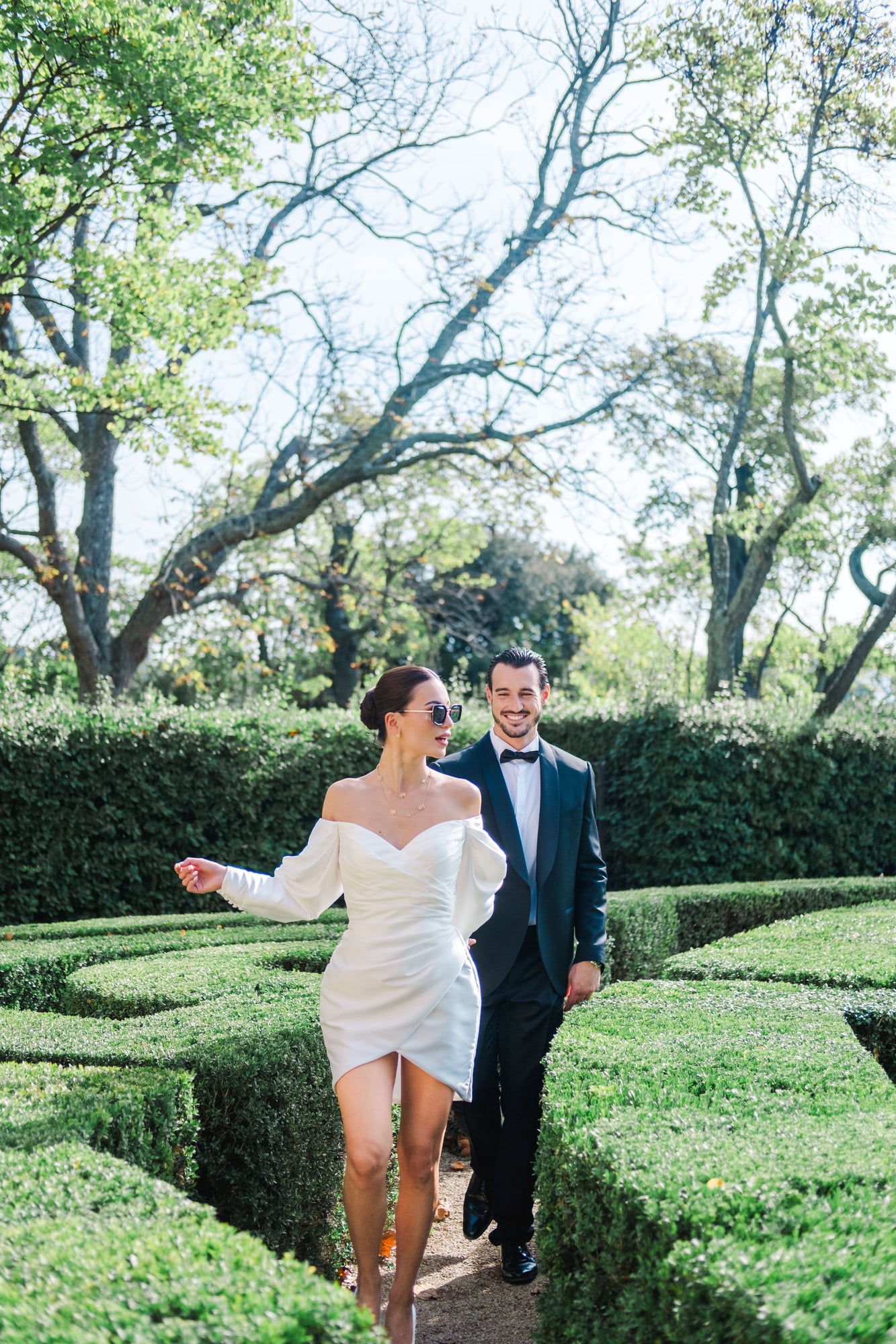 Au Château de la Gaude, chaque moment prend une dimension particulière. Une grande table dressée en extérieur, sublimée par des lustres suspendus, crée une ambiance élégante et intimiste à la nuit tombante. Le first look se déroule dans une atmosphère douce et sincère, empreinte d’émotion. La cérémonie laïque, installée dans les jardins face au château, offre un cadre naturel et apaisant, propice aux échanges authentiques. Entre lumière provençale, décors raffinés et instants partagés, ce lieu magnifie les mariages avec justesse et chaleur.