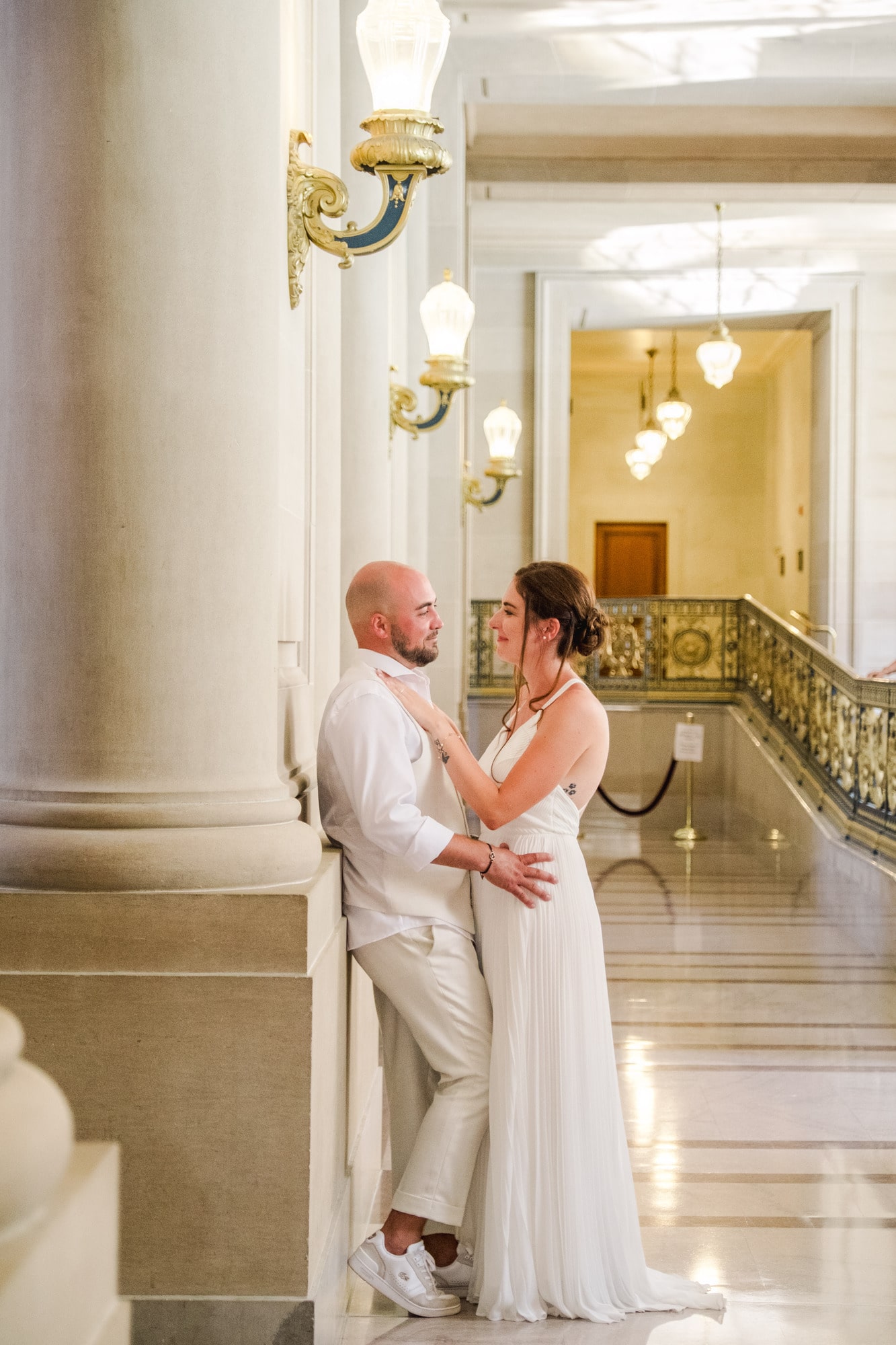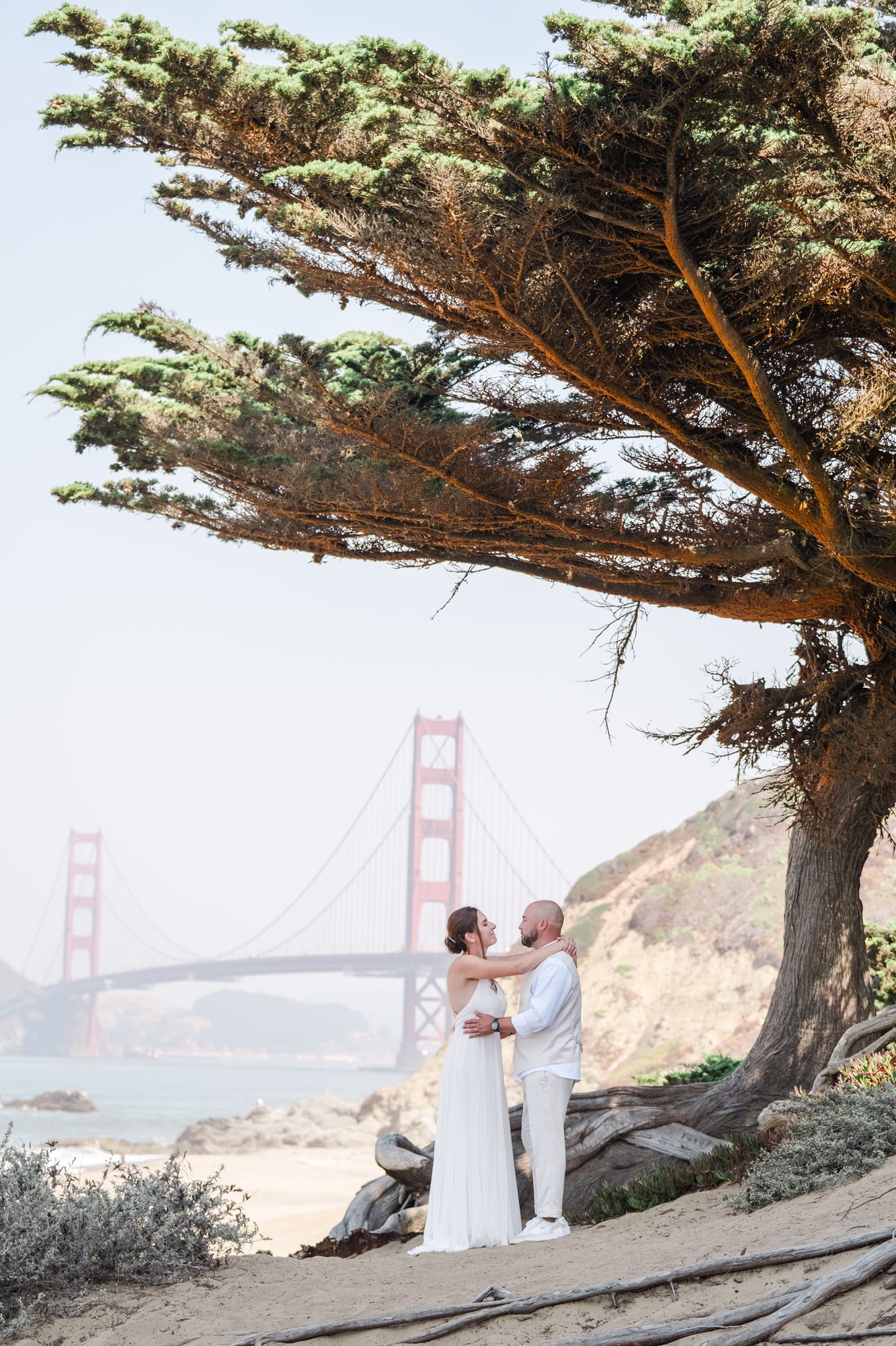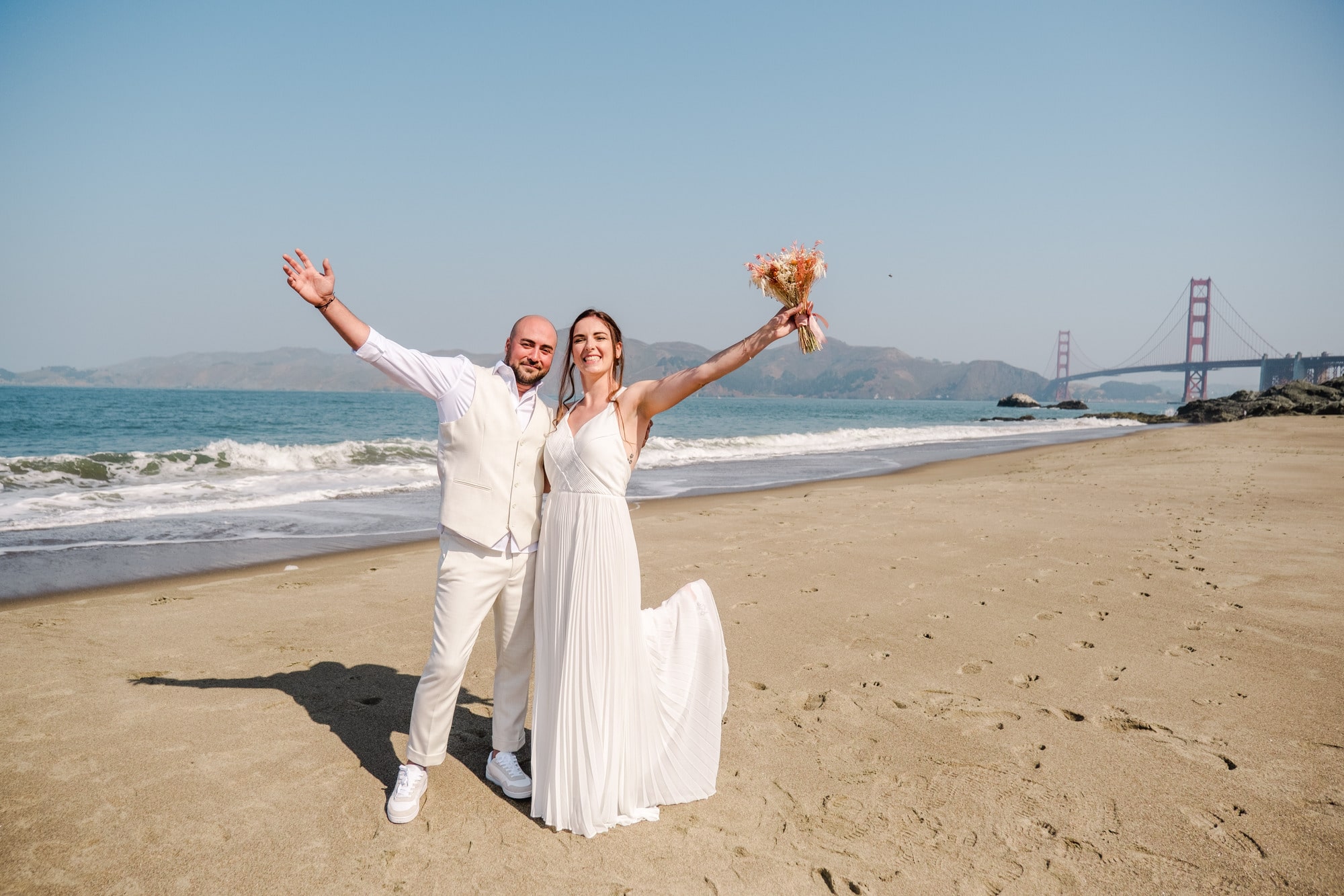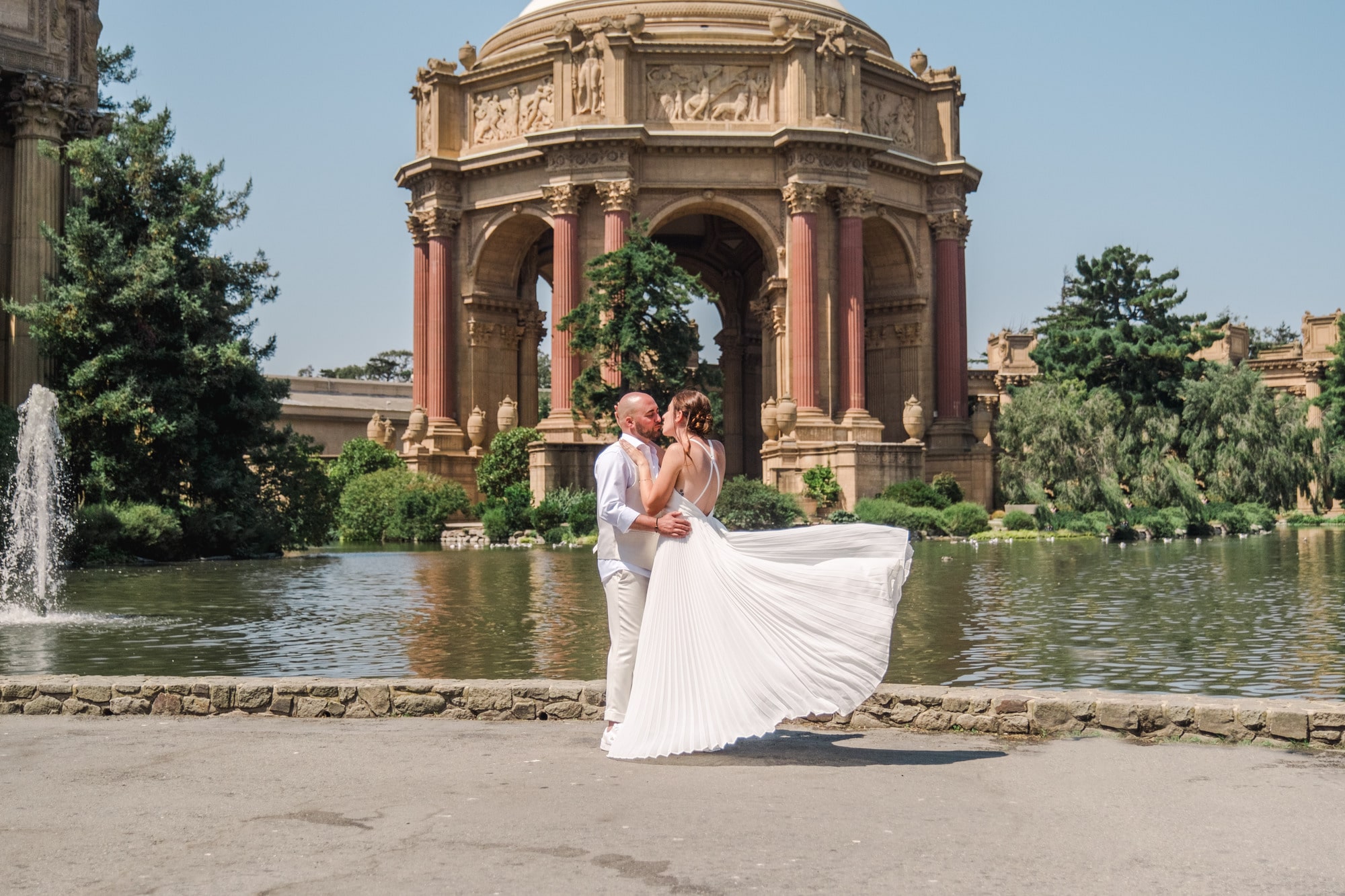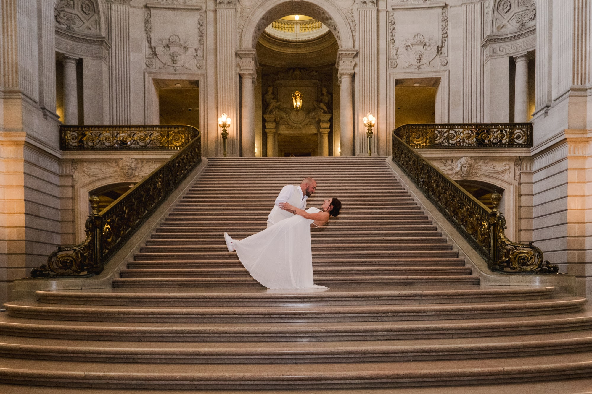 Entre la plage face au mythique Golden Gate Bridge, les lignes majestueuses du Palace of Fine Arts et l’élégance du City Hall de San Francisco, leur mariage s’est déroulé comme une parenthèse hors du temps. Chaque instant reflétait leur complicité, leur simplicité et leur joie d’être ensemble. Photographier Laura et Xavier dans ces lieux emblématiques de San Francisco a été un véritable privilège. Un mariage en petit comité, centré sur l’essentiel : l’amour, l’émotion et la liberté.